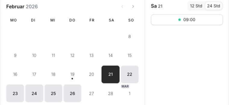 (Hinweis: Der 09:00 Uhr Slot ist nur ein Platzhalter für das System.)