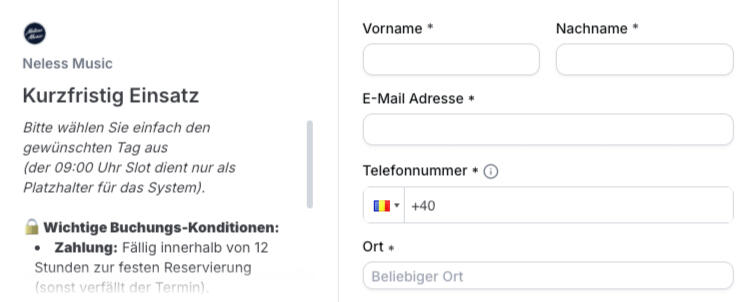 wie weit im Voraus Sie mich buchen (Vorlaufzeit bis zum Event):🚨 Notfall / Sofort-Einsatz (< 24 Stunden Vorlauf):